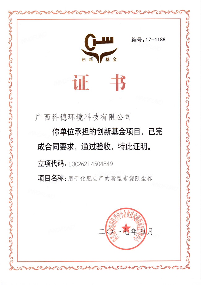 国家创新基金验收证书
