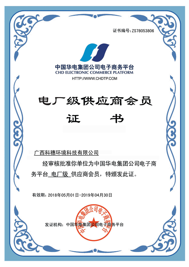 电厂级供应商会员证书